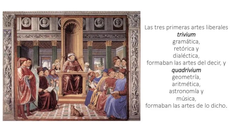Las 7 artes liberales, trivium, quadrivium y falacias lógicas. Se le atribuye su sistematización al escritor enciclopédico y retórico marciano capella en el siglo v. Así, a partir de la reforma de las enseñanzas efectuada en el siglo xi por alcuino, las tres primeras artes liberales gramática, retórica y dialéctica, formaban el trivium, artes del decir, y las cuatro restantes geometría, aritmética, astronomía, música, formaban el quadrivium, artes de lo … C, marciano capella y se convirtieron en la estructura usual del conocimiento medieval. Primero tenemos las artes triviales (trivium) las cuales se dividen en tres: